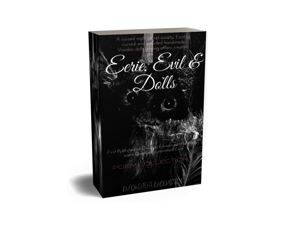 Eerie, Evil & Dolls is the first Poetry Collection Ebook composed by Qwufua Broomstick from year 55 A.S to year 57 A.S. The book below contains four poem collection named HATE, QWUFUA BROOMSTICK NOIR, VOODOO RITUALISTICS and RED ROOM.